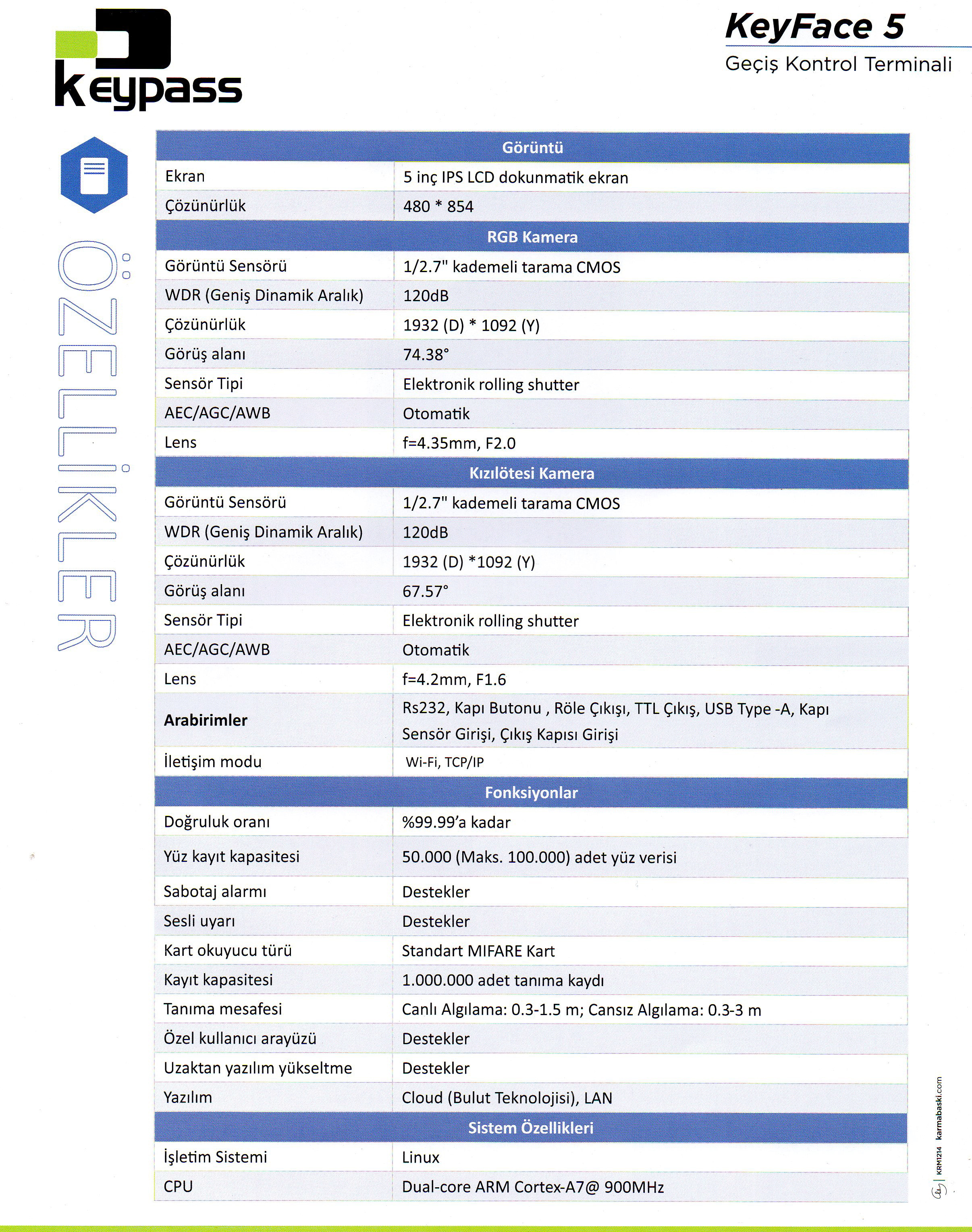 KeyFace 5 : Yüz tanıma, Mifare kartlı geçiş özelliklerini opsiyonel olarak tanımlama. Bütün personel devam kontrol takip(pdks) sistemlerimizle uyumlu çalışır.